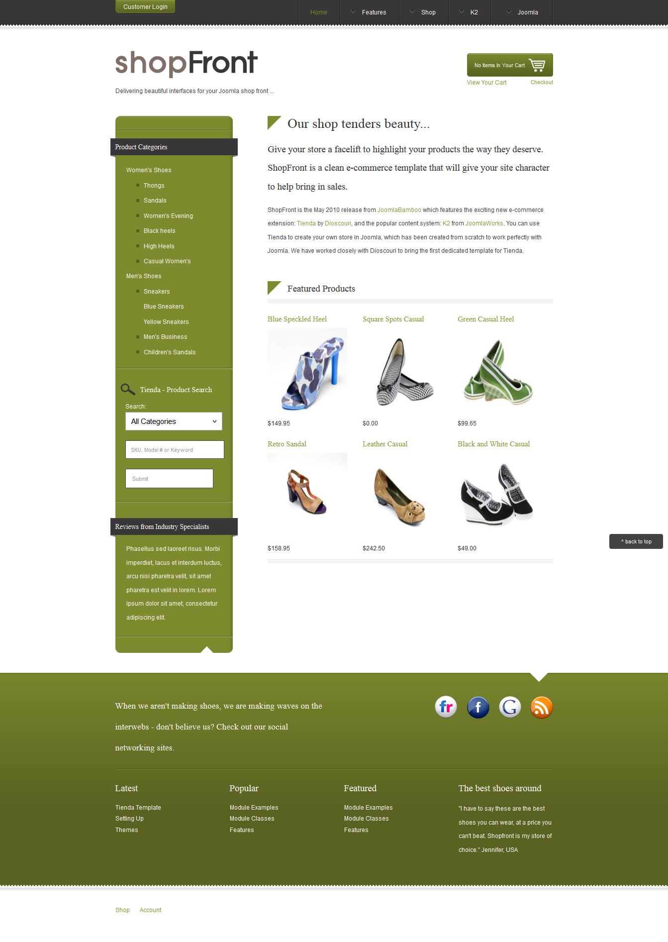New template from the studio ShopFront JoomlaBamboo for e-commerce and has adequate for this appearance. Template for an online store is fully developed under Tienda component and a component K2. Template Shop provides a clear and clean interface that you could create your ideal online store Joomla, to put their products in the beautiful view and the open design, based on the framework Zen Grid Framework. Tienda is a brand new module devepoled and writing from scratch in MVC within Joomla and mogzhet easily be changed or used for any other Joomla templates. The template has over 50 module positions, they postroiny framework for Zen Grid, which means lower costs in learning where the positions and how to configure them, as used in other templates studio joomlabamboo.