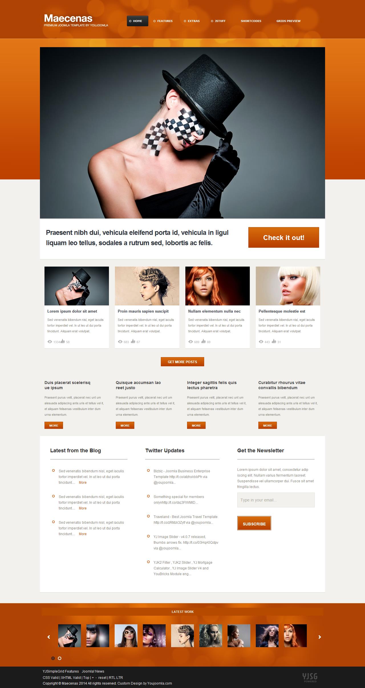 YJ Maecenas - a beautiful pattern with support for adaptive functions of the design studio YouJoomla, which is perfect for creating websites portfolio. This template includes 3 preset styles, 8 custom styles for modules and 3 types of animation effects, allowing the site to give a special unique and original look. In the assembly includes the best clubs modules YJ Image Slider, YouYork Modules Slider, YJ Multi Tabs, YJ Latest Tweets, MultiMedia Box, YJME and YouBricks Engine Module, which in combination with K2 component will provide a flexible and convenient placement and publication of materials on the site. Corporate framework studio Rock Solid Framework provides full code optimization, cross-browser support and fast download speed.